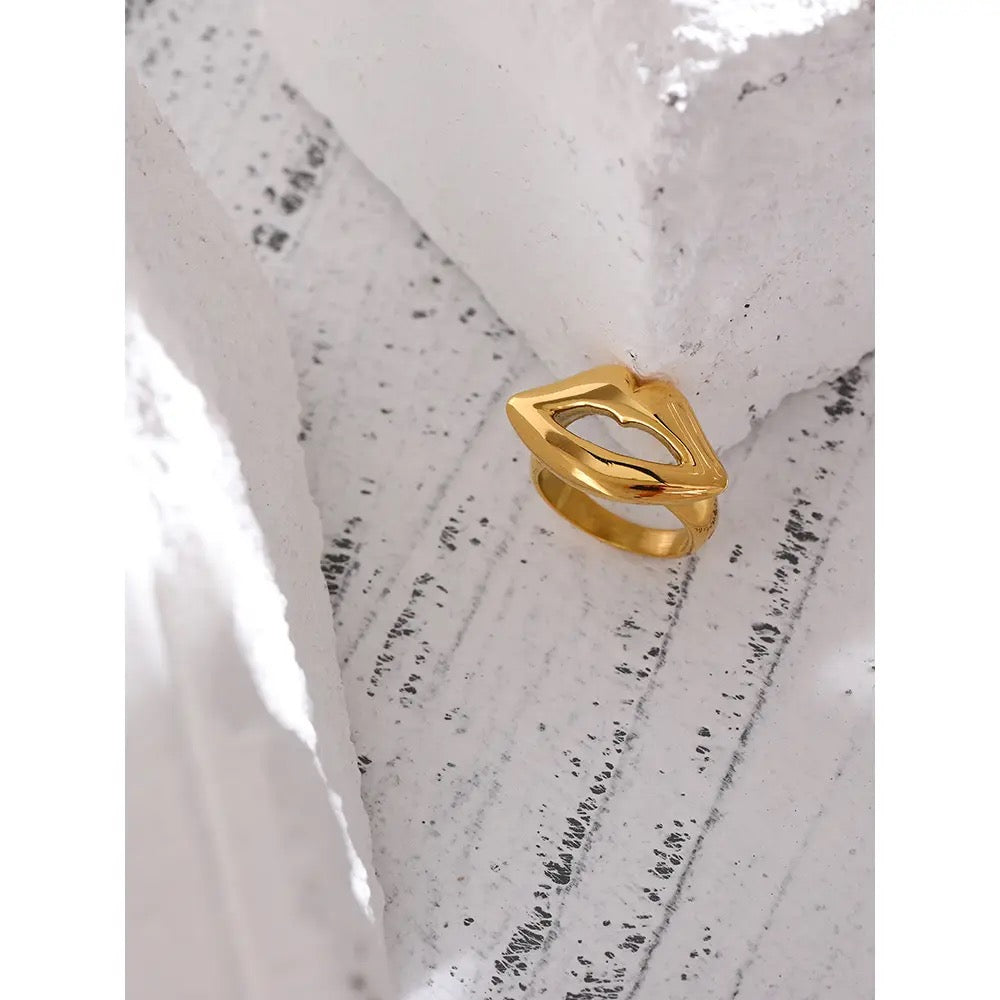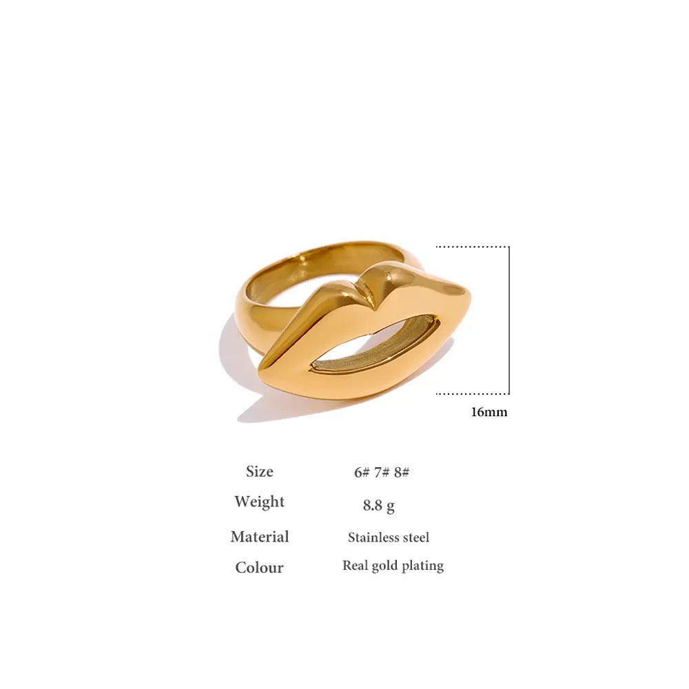 Stainless Steel Kiss Ring 18K Gold Plated Hoop Waterproof Jewelry